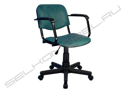 Стандартная комплектация - металлопластиковое пятилучье, подлокотники на металлическом основании, обтянутые винилискожей с прокладкой из поролона, газлифтовая регулировка высоты.